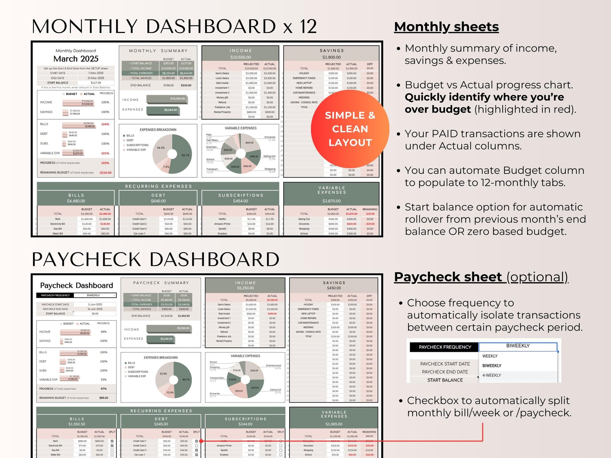 - β Paycheck Dashboard - Perfect for bi-weekly or irregular income