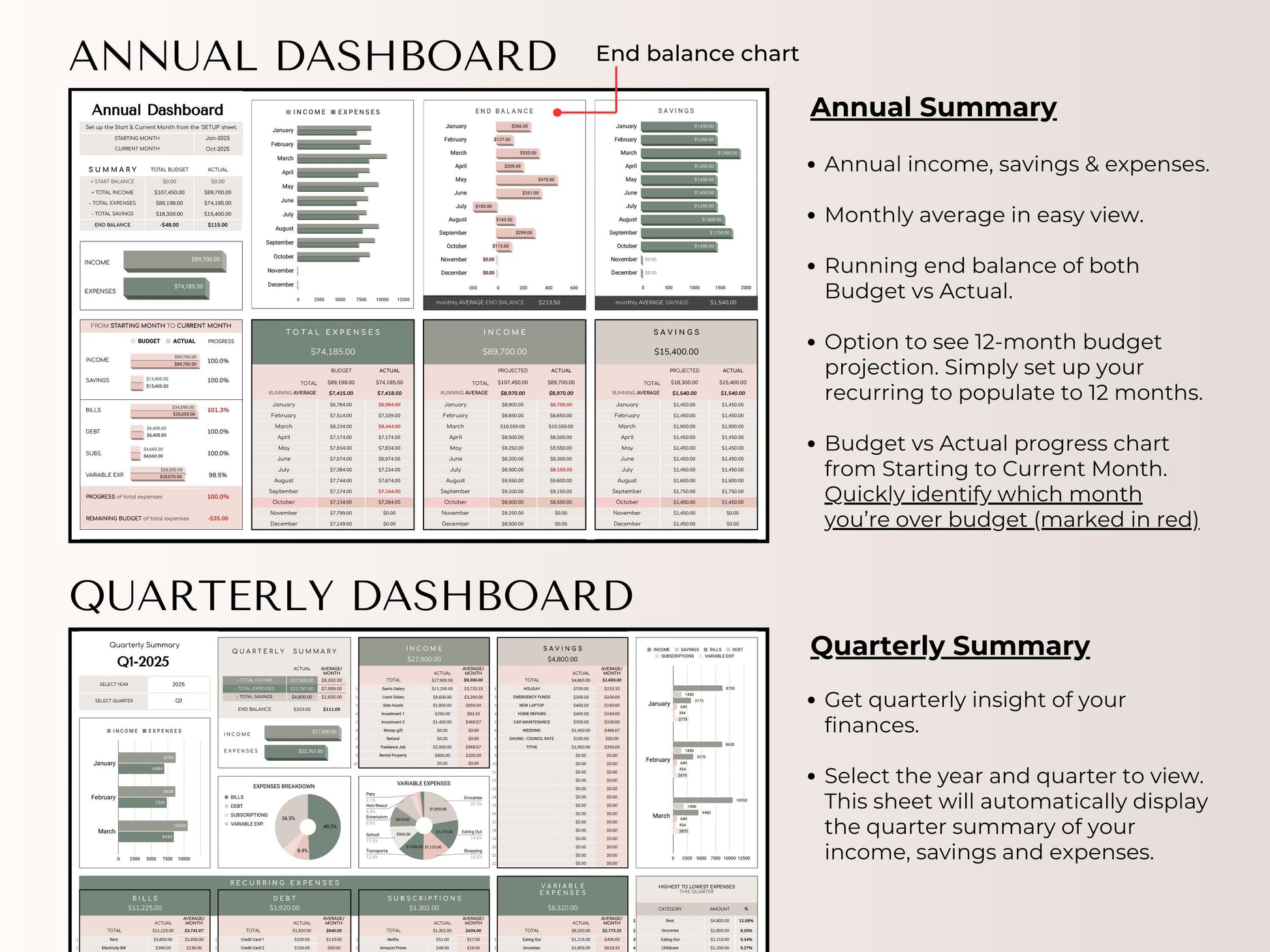 - β 12 Monthly Dashboards - Each month automatically populated