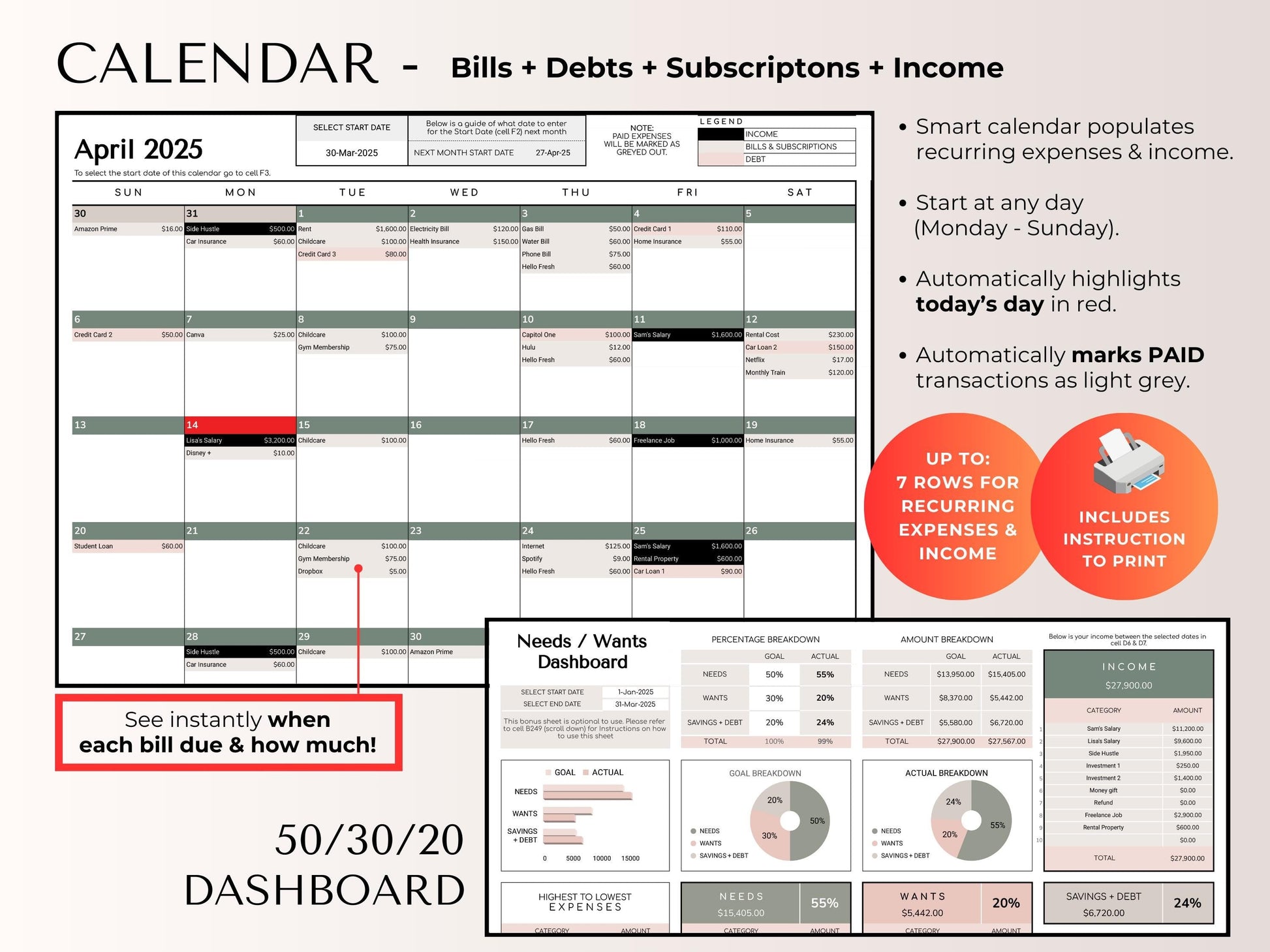β Professional Bill Tracker ($27 value) Track due dates, amounts, and payment status for all your bills in one organized system.
