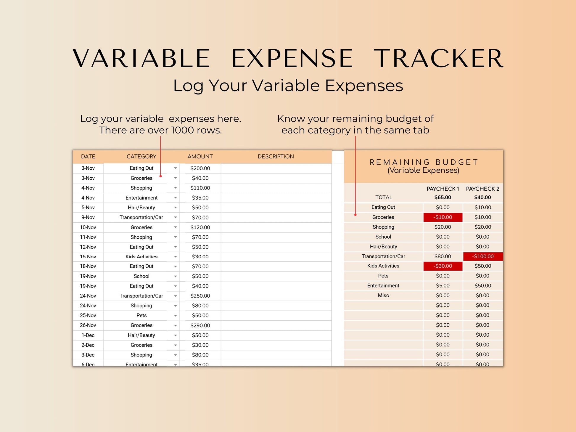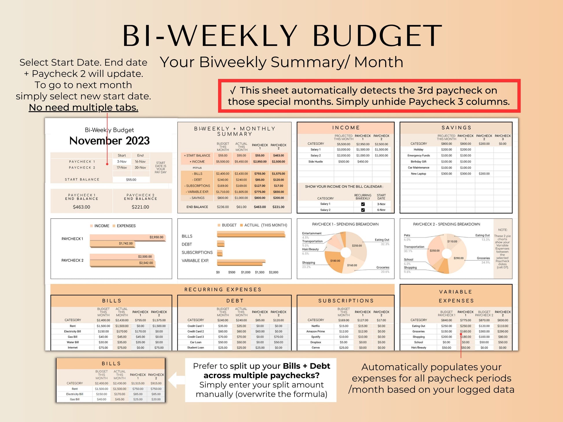 ✓ Biweekly Budget Dashboard - See your 2-3 paycheck summary each month