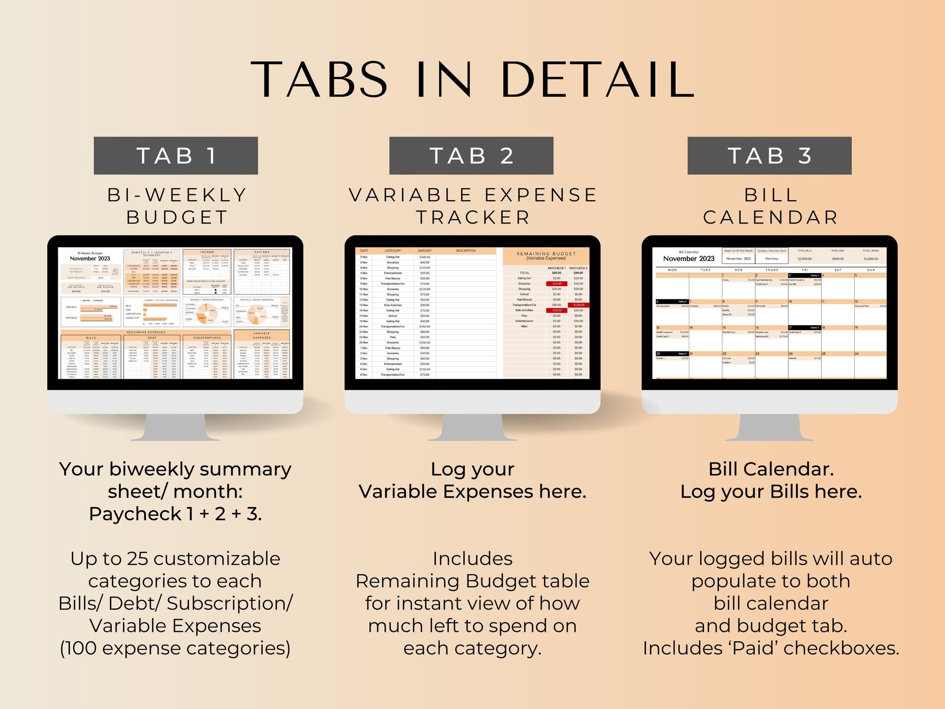 Biweekly Fortnightly Budget Planner Google Sheets Spreadsheet -Peach