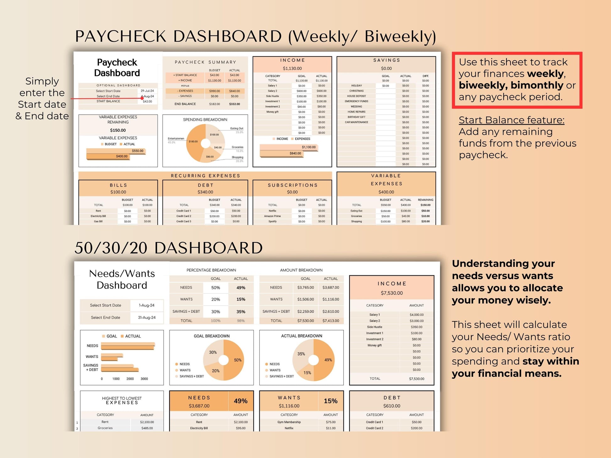 ✓ Paycheck Dashboard - track your finances per paycheck period