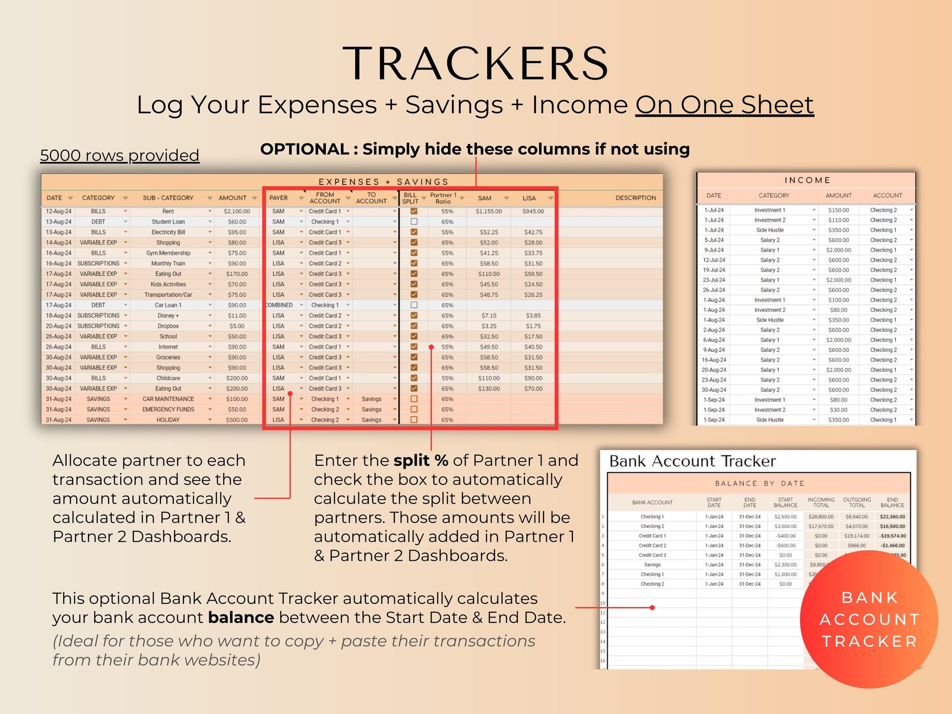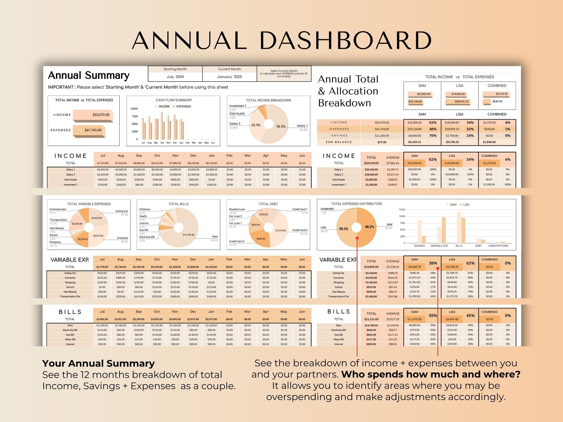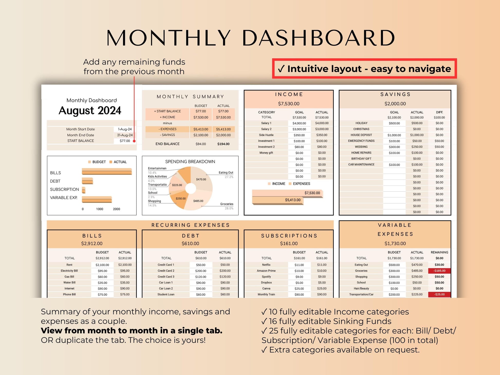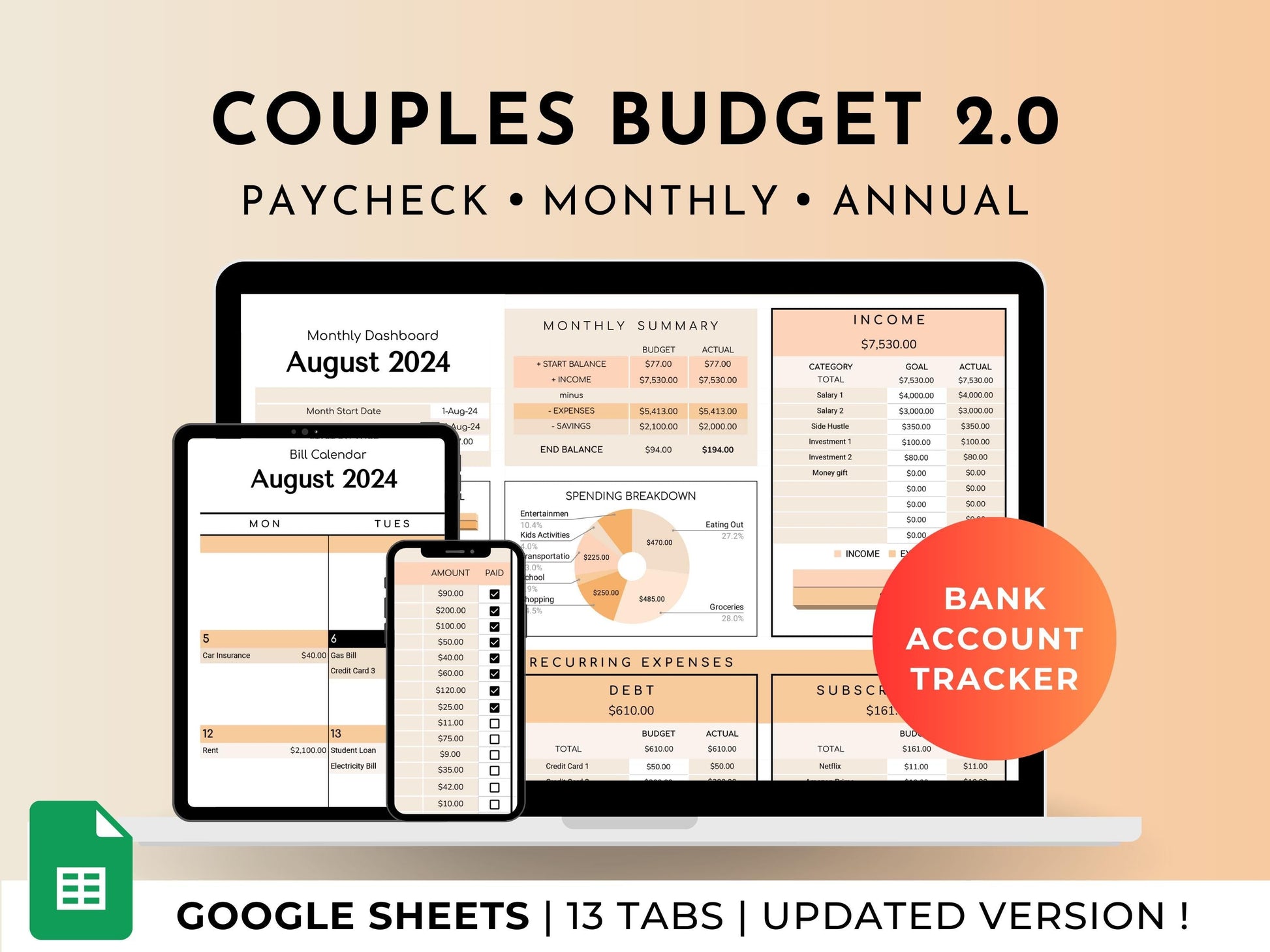 Couples And Family Budget 2.0 Spreadsheet Google Sheets - Peach