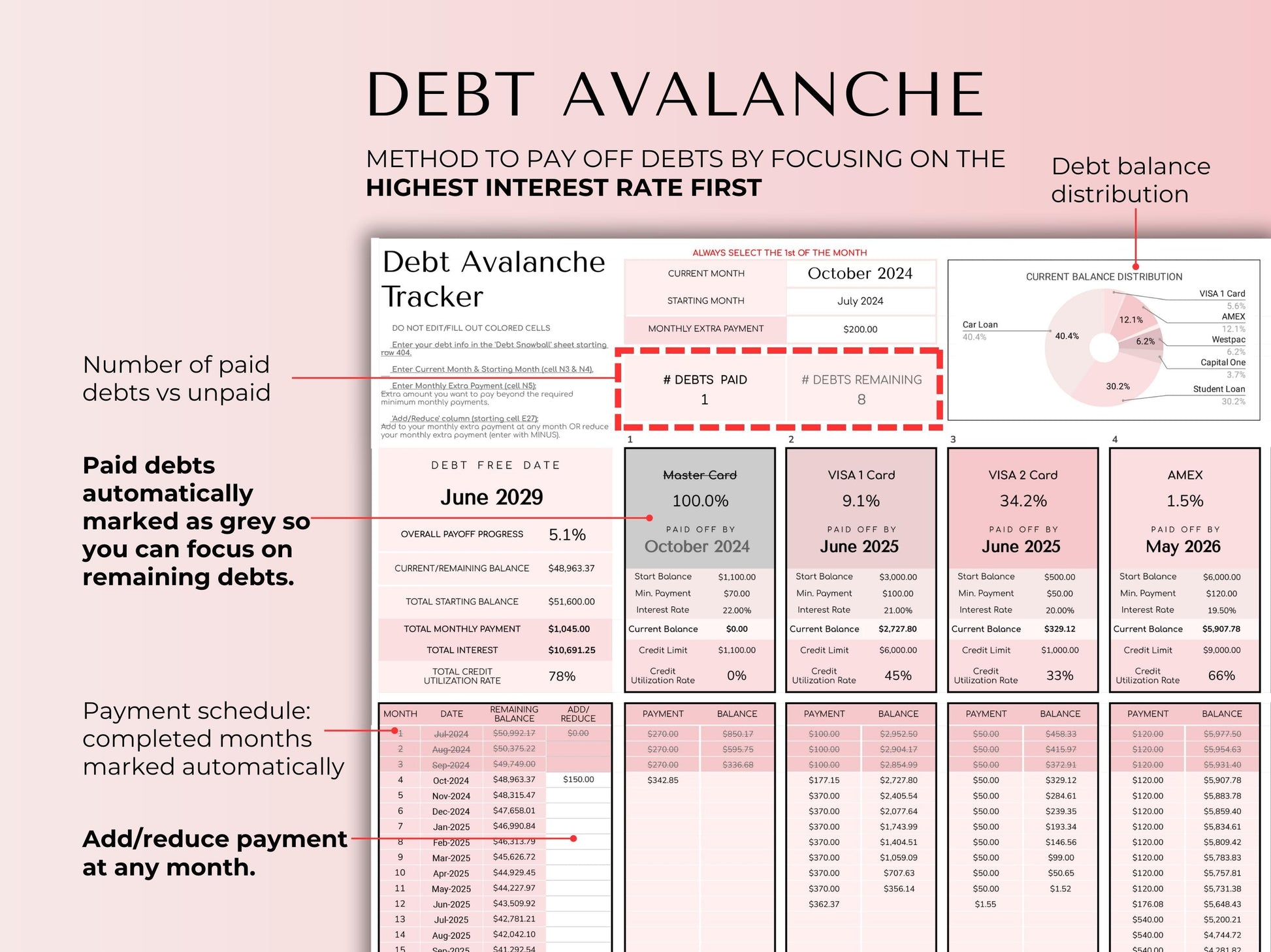 Complete instructions, debt snowball calculator, debt avalanche calculator, and progress dashboard.