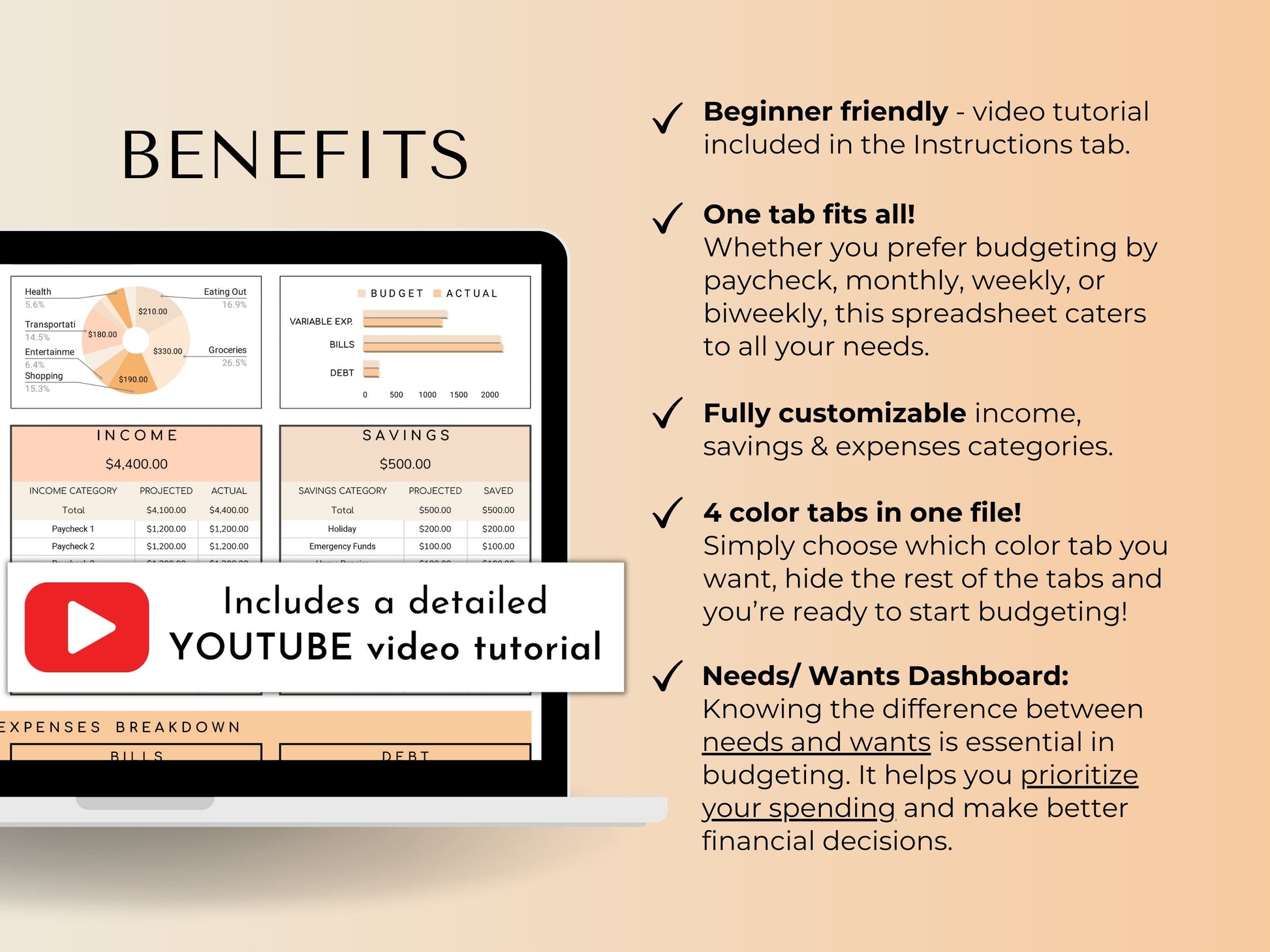 ✓ One tab fits all! Whether you prefer budgeting by paycheck, monthly, weekly, or biweekly