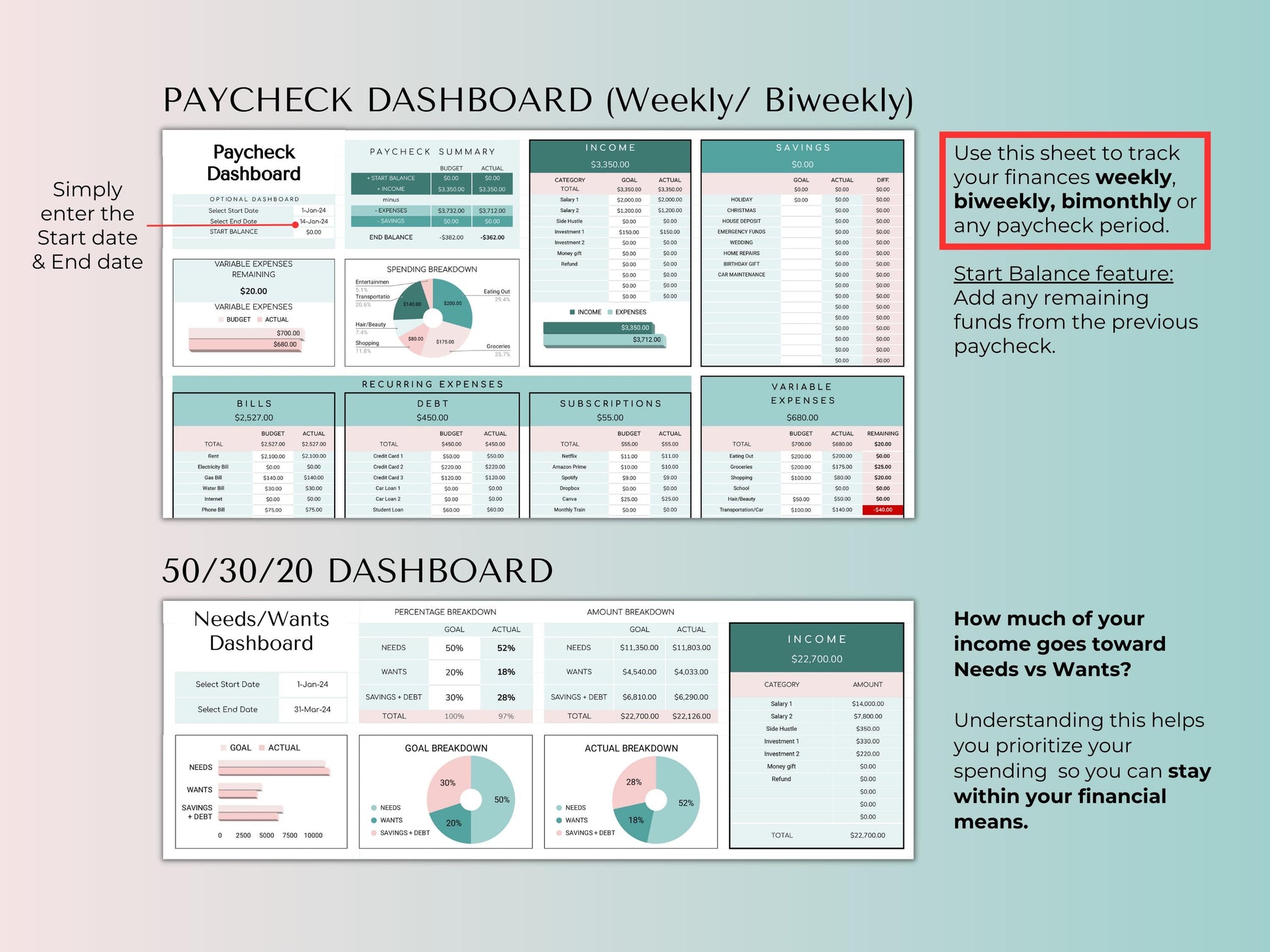 ✓ Paycheck Dashboard - Track your finances per paycheck period