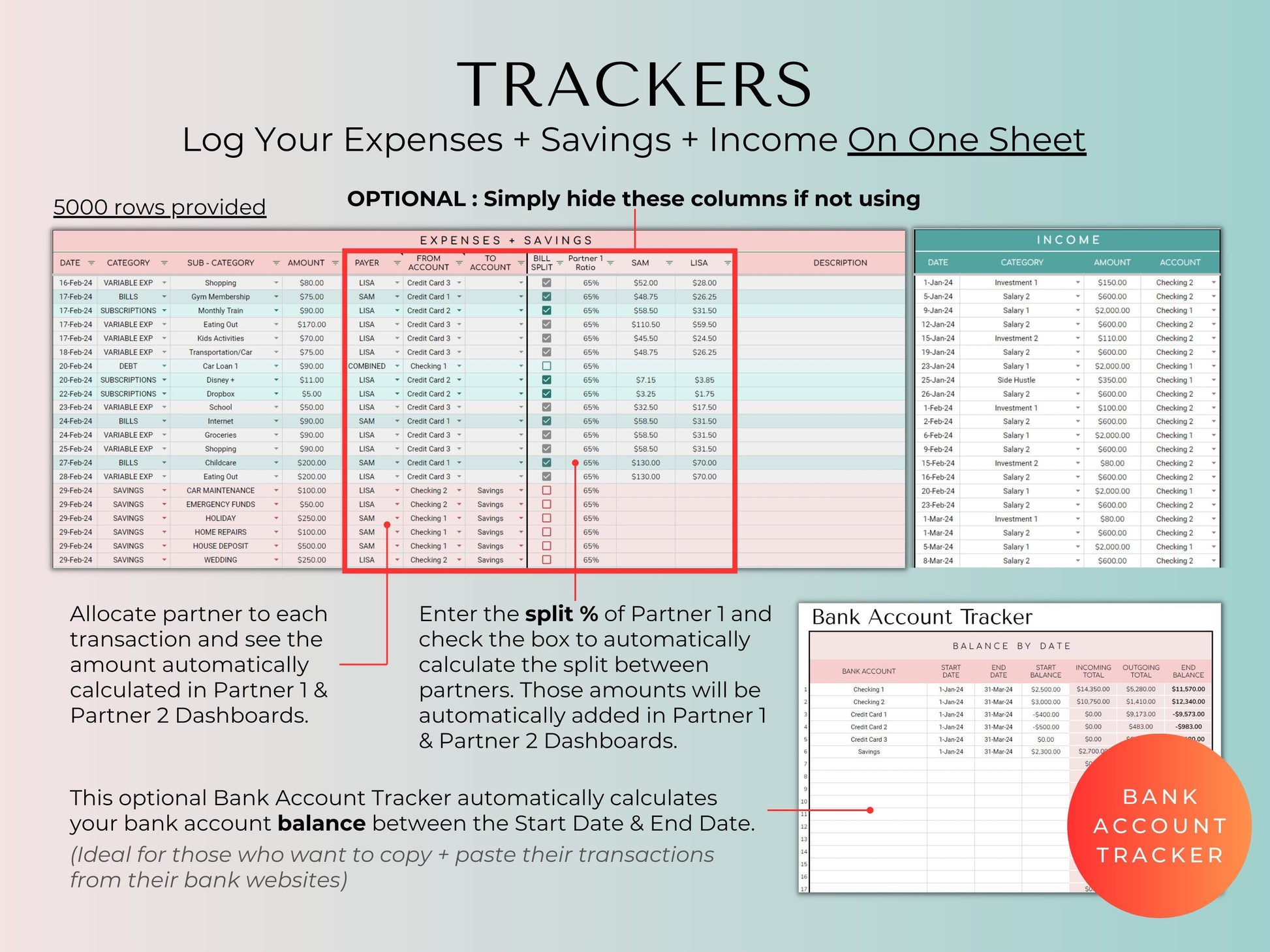 ✓ Automatic bills split calculation between partners - simply enter the %