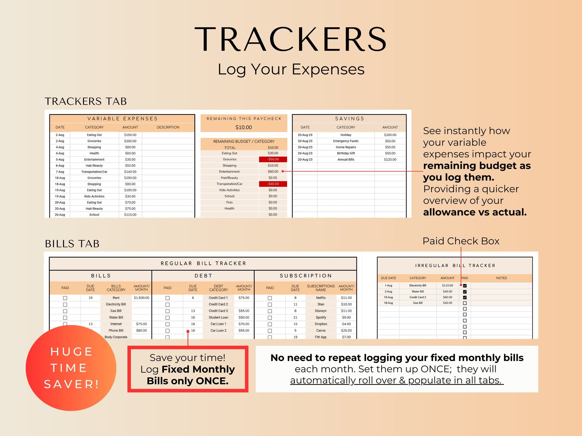 Budget By Paycheck Google Sheets Spreadsheet Template - Peach Mode