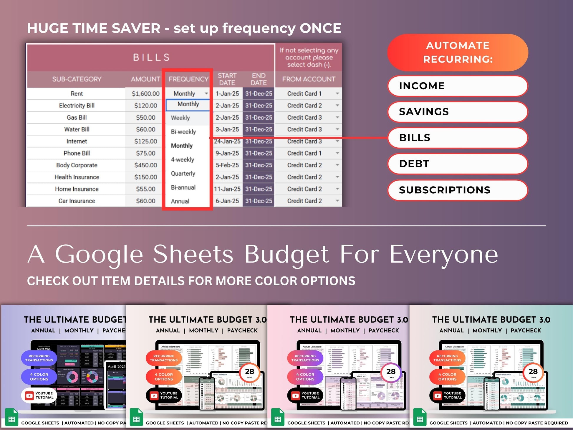- Recurring transactions? Set them up ONCE and watch 12 months populate automatically