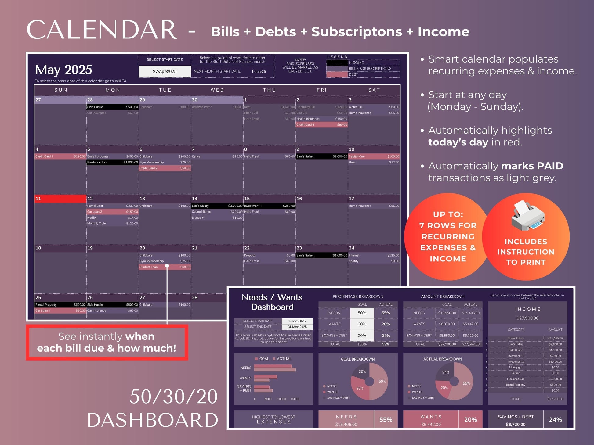 Monthly budgets, debt payoff calculators, savings trackers, bill organizers, net worth monitoring, subscription management, and more.